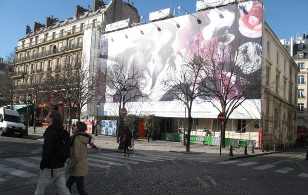 Ainsi , sur la place de l’église Saint-Germain (VIe arrondissement à Paris), un immeuble vient de faire l’objet d’une opération de ravalement qui s’est métamorphosée en exposition artistique de l’artiste anglaise Quentin Jones, coup de cœur de la fondation Sisley/D’Ornano, : La marque apparaît dans un bandeau. Ce n’est pas de la publicité puisque 90% de la bâche est une œuvre d’art. « Je me suis renseigné sur le règlement local de publicité, j’ai pris tous les renseignements possibles en matière de sécurité. Le nom de la fondation apparaît sur la bâche mais ici, on ne vend pas de produit »